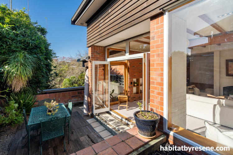Sitting on 1404 square metres of land, the brick home has been Ian and Georgia’s oasis for the past five years with their daughter. A phoenix palm, kowhai and gledisia attract visiting tui and wood pigeons in the garden.