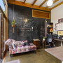 Resene FX Blackboard Paint provides a place to get creative in the home office. Resene Rice Cake is painted on the opposite wall and ceiling.
