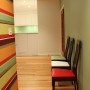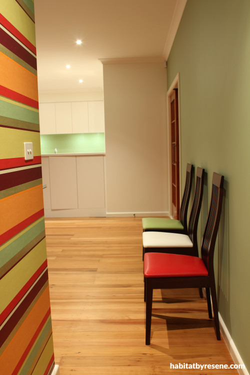 Even three chairs come to the colour party. The wall is Resene Jigsaw.