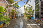 Resene Half Black White on the walls and ceiling complements the exposed brickwork in the industrial building and ties in with the Resene Diesel used in the conservatory.
