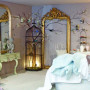 Bordello. An over-the-top theatrical lusciousness with sensual colours like ruby red, bright gold and cerise pink. Artfully clutter your home with accessories, as well as large posters of Parisian scenes or 1940s movie stars. Extravagant and exaggerated, heavy velvet or brocade chaise lounges and plump cushions complete the look.