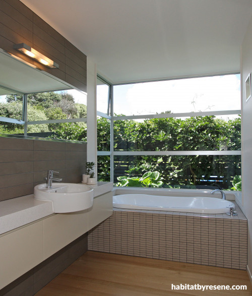 Even the bathroom (painted, rather aptly, in Resene Soapstone) has a sense of connection with the outside environment.