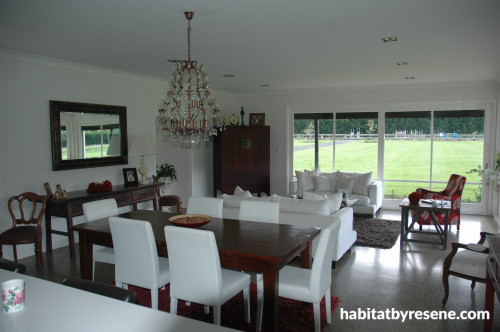What was the biggest challenge with decorating your home interior? I wanted it to be stylish, but it is a country home, so it has to be functional too - after all, we are likely to be coming inside dripping wet after being drenched in a storm while checking on the newborn lambs! So, the concrete floors are a great success!