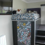 Instead of putting bunk beds in the boys’ bedroom, Adam and Debra constructed two raised beds that each sit on a walk-in storage area that the boys can also use as their own private mini-room. Painted in Resene Blackjack, they add an industrial, edgy look to the room, and are often admired by visitors. The padded headboards were made by Debra.