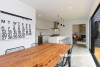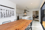 For all the interior walls, we chose Resene Alabaster. It is an absolutely firm favourite of ours. It has just the slightest touch of grey in it to give it a cool and clean look. It also looks fantastic against our polished concrete floors and the black oversized exterior joinery.