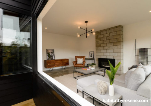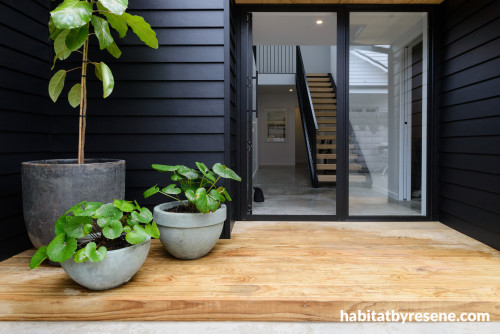 The Resene Black exterior is a great contrast to the interior, painted in Resene Alabaster.