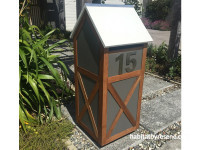 “This is the sort of thing retired architects do with too much time on their hands,” according to David Wood, a retired architect who recently made this secure postbox out of plywood and various recycled bits for his Hawke’s Bay area home.