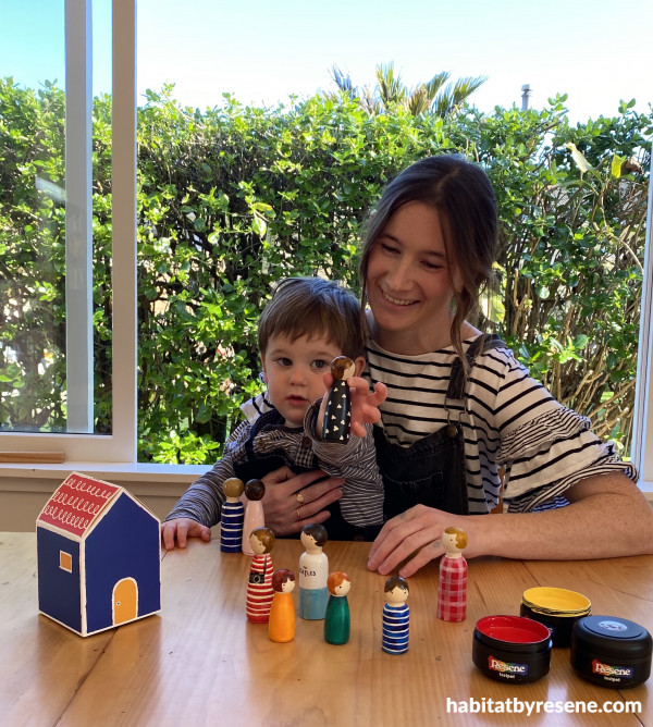Creator of Folk, Emma, and her son Leo enjoying some time with the creative and colourful dolls.