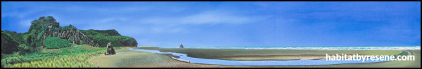 The colours of the West Coast beaches and overcast skies were also an inspiration, with Lyn using Resene acrylic paints to capture its beauty.