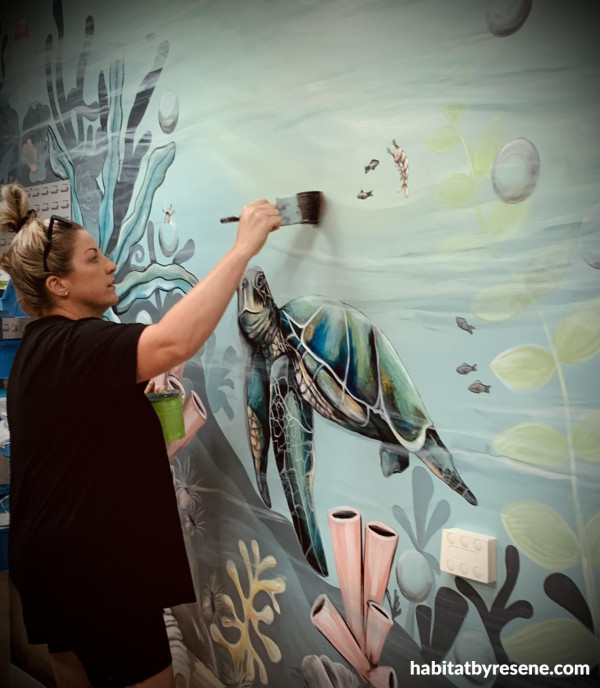 “I chose to paint the underwater scene as I don't think there is anything more calming than water. The mural is playful, fun and quirky, but also gives a nod to some of New Zealand's very special sea life, including the Little Blue Penguin, and Maui Dolphin.”