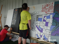 Panuku Development provided a shipping container for the artists to use as a studio while they work on the mural panels. Visitors can drop by for a chat and catch a peek of the work in progress from now until 29 March.