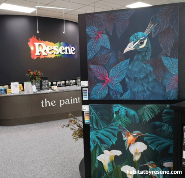 Artist Alana Mays has her striking bird paintings displayed at the Resene ColorShop in Masterton. She also used an array of Resene hues including the fabulous Resene FX Nightlight – glow in the dark, which she applied to her lily flowers. See more of Alana Mays Creations here.