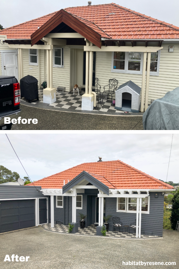 When Neralee sought help from Resene Colour Expert Meryl Southey, she had pictures of a house she had seen with a gorgeous slate blue. Meryl helped to narrow down the perfect shade for the exterior of Neralee’s home, and she couldn’t be happier with the result. Gone is the dated cream, and in is Resene Westminster, a striking grey blue tone. Alongside this colour, used on the weatherboards, Neralee chose Resene Shark for the garage door and chimney and Resene Tuna for the plaster surfaces. The front door remains in a colour they have loved, Resene Foundry. “I’m so glad I spoke to Meryl before we went ahead,” says Neralee. “I love Resene Westminster that she suggested, it’s the perfect balance between grey and blue in the tone we were after.”