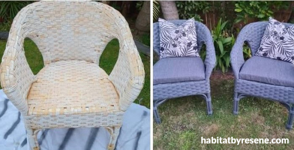 Debbie refreshed her garden chairs. Once looking old and tired, they are now painted in Resene New Denim Blue, a shade for both classic and modern homes. The new look gives a Hampton’s feel, with matching cushions for a cohesive look.