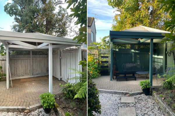 This habitat reader refreshed their outdoor pergola for summer. Gone from a dated white to a gorgeous soft green, Resene Green Meets Blue, it now blends in beautifully with the outdoor landscape and matches their patio in the same hue.