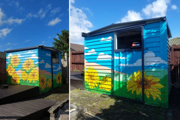 “Tucked away in my backyard is my garden shed, adorned with hand-painted sunflowers in Resene,” says homeowner Grace. “These cheerful blooms bring the space to life, making the garden feel vibrant and bursting with energy.”