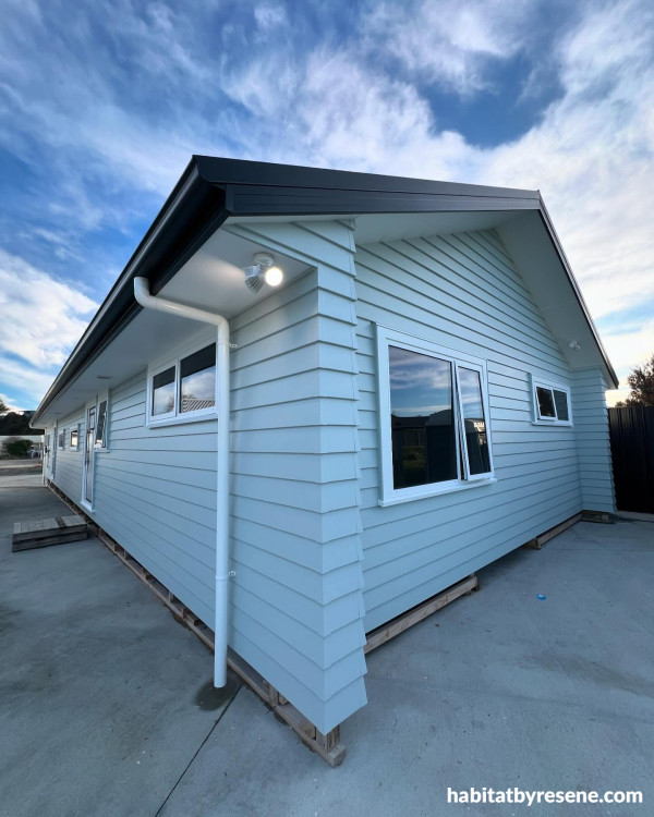 Colourcraft Decorating, based in Manawatū, recently completed this stunning exterior for a transportable home. Painted in a dreamy combo of Resene Duck Egg Blue on weatherboards and Resene Alabaster on the window trims and soffits, it’s a timeless colour palette and ready for its new life.