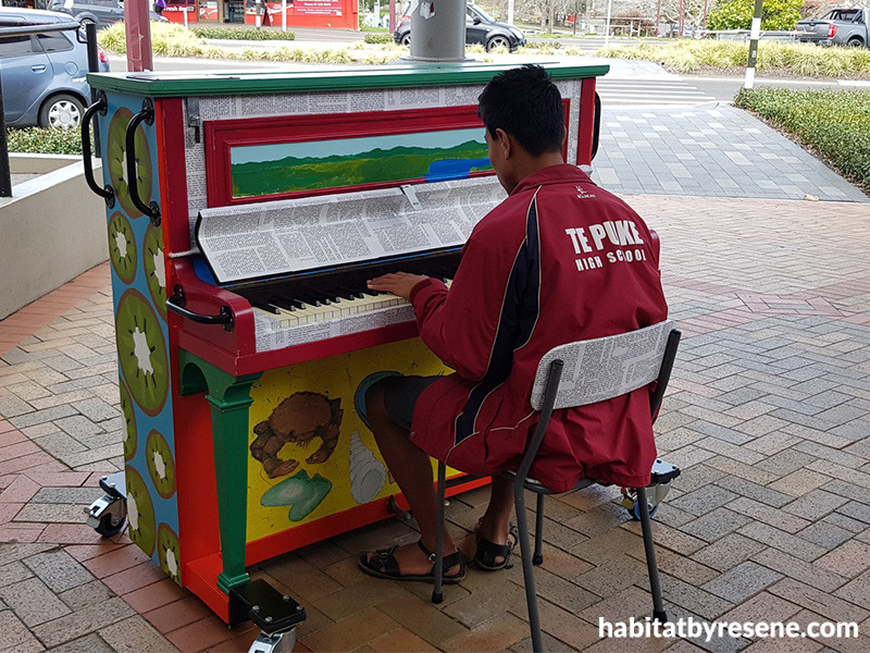Resene supplied the paint for the project, a donation that’s been commemorated with a plate added to the plate, and Te Puke Community Board paid for the wheels that allows the piano to be wheeled in and out of the library.