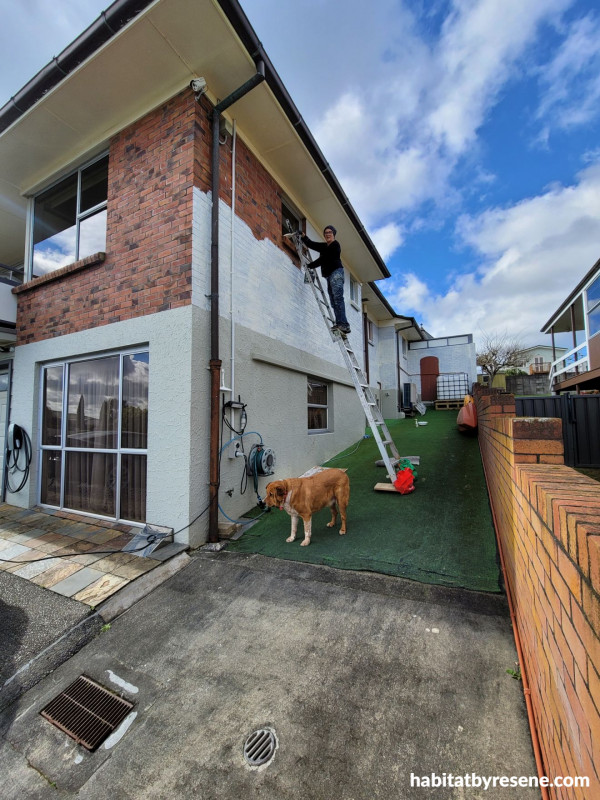 "I liked the fact that there was very little maintenance needed as it was, and I knew painting the exterior would involve lots of hard work,” Gudny says. “Then one week before the first lockdown, I was in Mt Roskill Resene ColorShop buying the paint for the project and I quipped to the sales assistant that I’d be set if there was a lockdown - and then there was! So, the transformation from a 70’s earthy orange brick to a completely painted house began.”