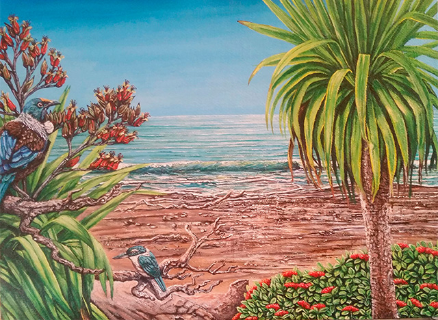 Having lived mostly by the Hawke's Bay coast, my art work is influenced by New Zealand's waterways and coastlines, from a protective and conservationist viewpoint. I can’t remember the first time I started drawing, but I was always scratching away with pencil on paper according to my siblings. I didn't become a professional artist until my late 30s. My parent’s suggestion to get a 'real job' at the age of 17 meant I had an enjoyable banking career. Skills learnt there helped me build a business plan around commissioned artwork. I realised early on that I needed a point of difference. I found myself aligning with Te Whaariki, the New Zealand Early Childhood Curriculum and this is represented by the woven flax mat in my work - how we connect to each other, our environment, and allowing our children to develop naturally.