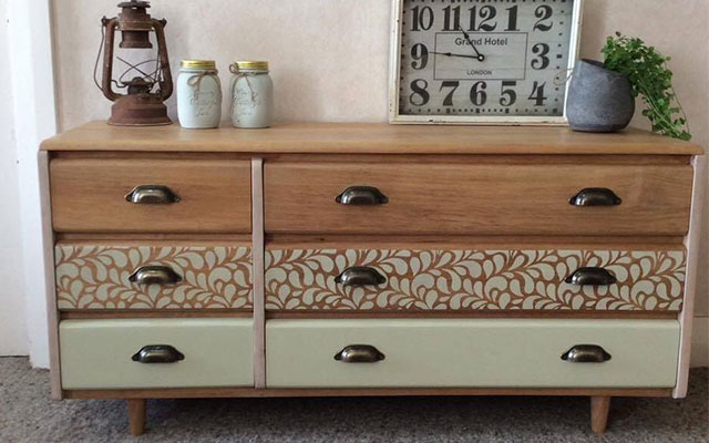 Now this is a tricky one – I love so many of the pieces we have done! If I was to have one in my house though it would be this white mahogany lowboy finished in Resene Green Mist. This style of lowboy is very popular at the moment and provides great storage too. One of the pieces I had most fun doing though, was this eye-catching geometric stag tallboy (above) – we don’t get to use colours this bright very often!