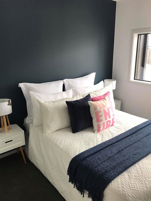 According to Rose, the idea for the overall colour scheme was “to find nature-inspired feature walls which would complement the neutral tones throughout, but also appeal to a wide market.” This approach led her to choose Resene Atlas and Resene Coast to define the schemes of two of the bedrooms.