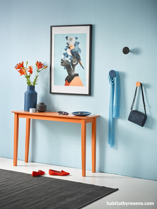 When it comes to entranceways, consider using a bold blue like Resene St Tropaz on your front door, then echoing the colour on a bench seat, coat rack or large planter inside your entranceway.