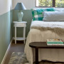 Resene Envy is a placid tranquil green, ideal for a bedroom, painted on the bottom part of these walls. Create your own crisp colour block ‘tide line’ using good quality masking tape. Resene Half Sea Fog is used on the top half of the walls and trims.