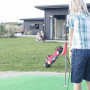 Budding golfer Ari already has a customised putting green in a corner of the back garden! It’s another touch of bright colour in this colourful family home.