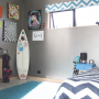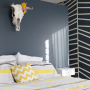 Eight-year-old Ari wanted black walls in his room but compromised on Resene Pure Pewter from the Resene Metallics and Special Effects range. The ceiling is Resene Alabaster.