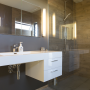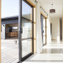Keen on embracing some eco principles, the house is built in an L-shape facing north-west for good sun access, and the polished concrete floors act as a heat sink. The children’s bedrooms have double doors to welcome the sun from the north-facing gallery hall.