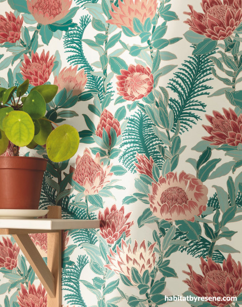 Mint green and rich reds are some of the true classic bach shades. Bring a bit of nostalgia back with a feature wall in these bubbly colours. This Resene wallpaper design would look great in a bedroom, bathroom or living room alongside classic whites like Resene Quarter Thorndon Cream and Resene Half White Pointer.