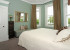 The second bedroom has a ceiling painted in Resene Coriander and Resene Black White. The wallpaper is from an older collection and is no longer available – get the look with design WM2565 from the Resene Wallpaper Collection, from Resene ColorShops.