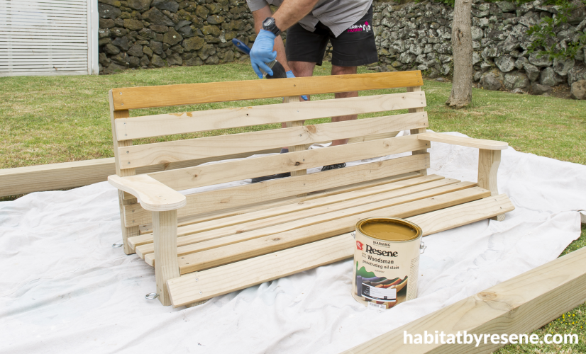 Step 6 – stain the timber. We used Resene Waterborne Woodsman stain in Resene Natural. If you're looking for another colour, the range has a large collection for you to choose from.