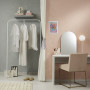 Left wall in Resene Loblolly with Resene Paint Effects Medium tinted with Resene Half Gull Grey, right wall in Resene Sakura with Resene Paint Effects Medium tinted with Resene Quarter Blanc, skirting boards and desk in Resene Snow Drift, floor in Resene Mercury. Rug from Grounded Homeware, rack and hangers from I’ll Hang it Here, sculpture by Gidon Bing from Good Form, curtain from Resene, artwork by Brenda Clews, mirror from The Warehouse, chair from Freedom, lamp from Good Thing. All other items stylist’s own. Project by Melle van Sambeek, photography by Bryce Carleton