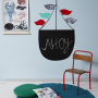 Resene Blackboard Paint in the form of a fat-bottomed pirate ship. The wall is Resene Dreamer, the flags are in Resene Dali, Resene Get Reddy, Resene Surfs Up and Resene Black White. The chair legs are in Resene Get Reddy.