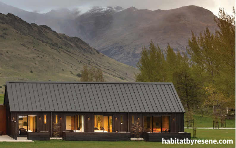 A COLORSTEEL® Slate roof in a tray profile was chosen to crown this Lake Hayes project, for its hardiness in the often-harsh environment as well as for its sleek appearance.