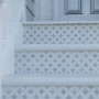 Greer also does beautiful things with stencils. These front steps are first painted with Resene Lumbersider tinted to Resene Athens Grey, and patterned with Resene Quarter Delta. The front door itself is finished in Resene Silver Aluminium from the Resene Metallic and Special Effects range.