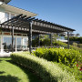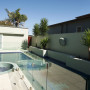 The swimming pool and spa are enclosed in a private sunny courtyard. (The body of the building and the boundary wall are Resene Washed Green. The window and door frames are Resene Half Tea.)