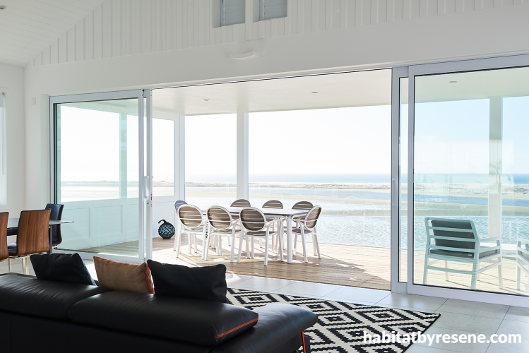 When Colin and Wendy planned a house to replace their old 1950s Mangawhai Heads bach, they had a very clear vision from the outset. The new house would be pure white. Or Resene Black White, to be precise.
