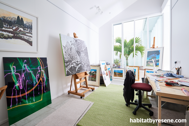 One room of the house where colour is celebrated – the owner’s purpose-designed art studio. See www.wendyleach.com for more about Wendy’s work.