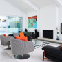 A restful scheme of all-white walls and ceilings (Resene Half Black White), and monochromatic furniture punctuated with burnt orange, makes this new home elegant and restful.