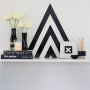 "Simplicity is the keynote of all true elegance," said the ever-fashionable Coco Chanel. When it comes to black and white, a classic design detail such as repeat triangles is an elegant result. Nikki has used Resene Nero and Resene Black White for this sophisticated shelfie.