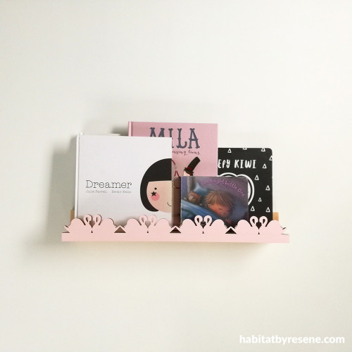 Pretty up a kid's bedroom with this original design Swan Shelf Ledge by Decor Handled. See their full range of shelving, painted in a variety of Resene colours, here.
