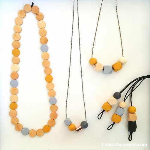 Heaven to Betsy’s wooden beaded jewellery is hand painted in Resene paint, then strung in a variety of styles to take you from casual day wear to more dressy evening wear. See the full collection here.