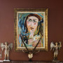 A wall in rich ginger brown Resene Desperado sets off the artwork and the brown marble fireplace below in this home designed by Terry Hogg of Lick Light+Colour.