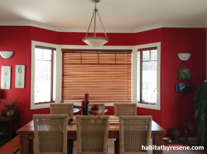 In her dining room, homeowner Raelene used the spicy salsa tones of Resene Jalapeño as a feature wall. “Red is a favourite colour that I've used before and that always gets positive comments.”