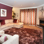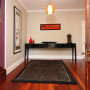 A visitor's first view of Alun and Julie's home gives them a taste of things to come: purple and rust colours, warm tones, dark furniture and lots of art.