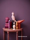 Despite this deep purple being a strong colour, it is surprisingly adaptable. However, if it’s your first time trying out a striking shade, a good rule of thumb is to stick to the same area of the colour wheel and add-on less-vibrant layers until you reach the right intensity. In this example, the Resene Couture wall has been layered with accessories in a range of pinks, plums and fuchsias including Resene Ringo, Resene Dawn Chorus, Resene Stetson and Resene Vanilla Ice. To mix it up and keep things from looking too tone-on-tone, this designer incorporated a candlestick in Resene Entourage, an antique gas canister in Resene Pioneer Red and painted the bird’s perch Resene Nero.
