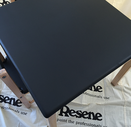 You could paint the top of the table with Resene Blackboard Paint so it could be a space to draw with chalk. We recommend using normal chalk only, as chalk pens tend to be permanent.